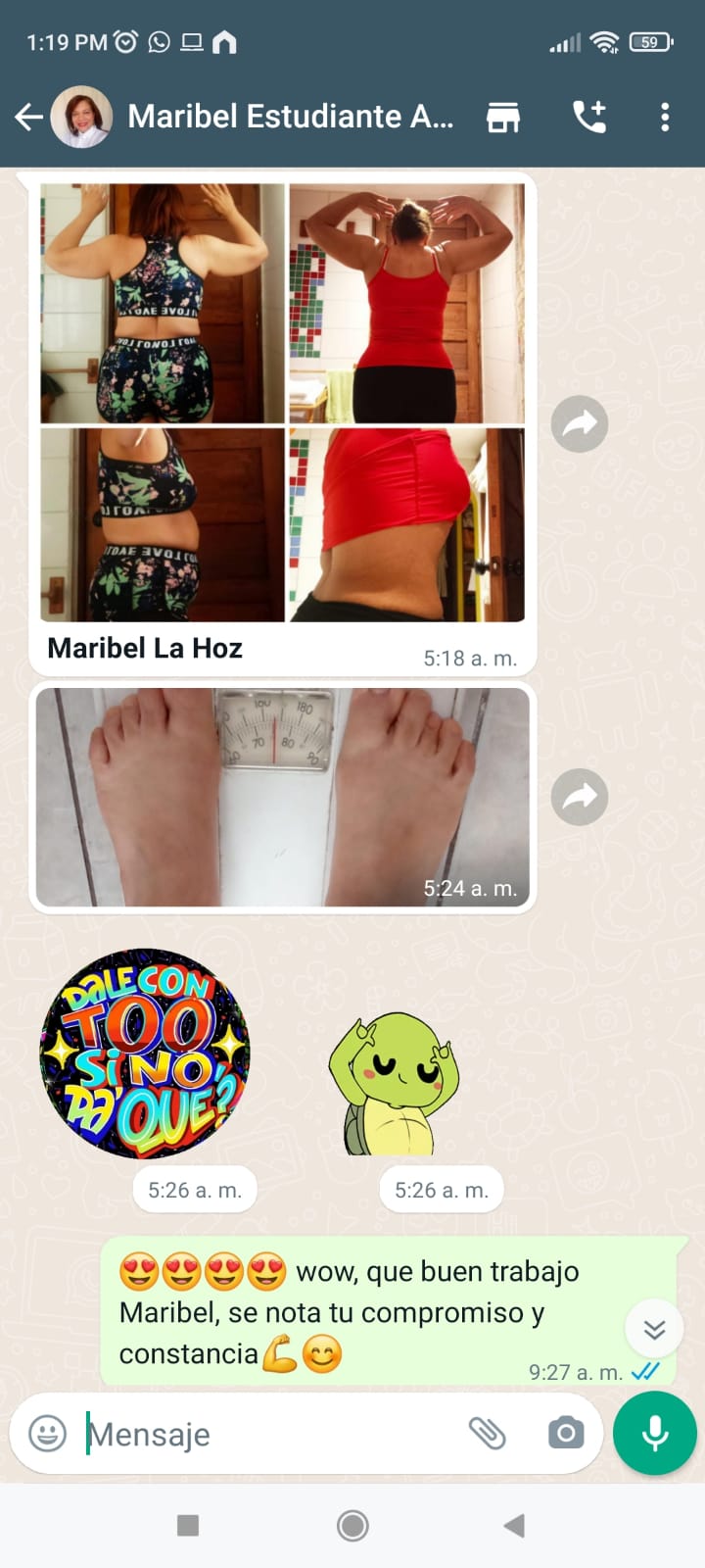 "¡Increíble trabajo! Cada paso cuenta y tú lo estás haciendo excepcionalmente. ¡Sigue así! 💪✨"